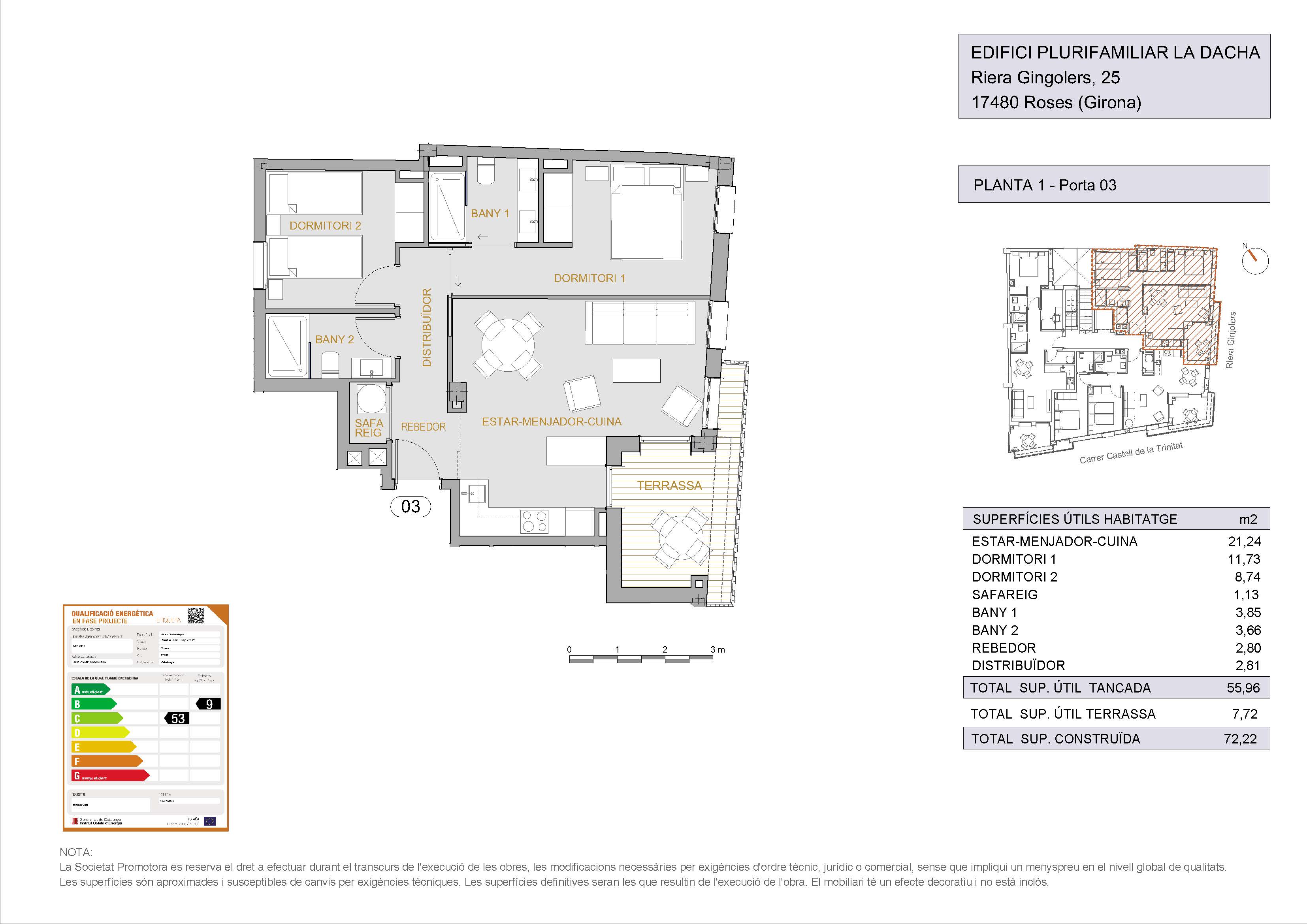 All the properties are equipped with reversible air conditioning, low-emission double glazing with an intermediate air chamber and motorized blinds with insulation.